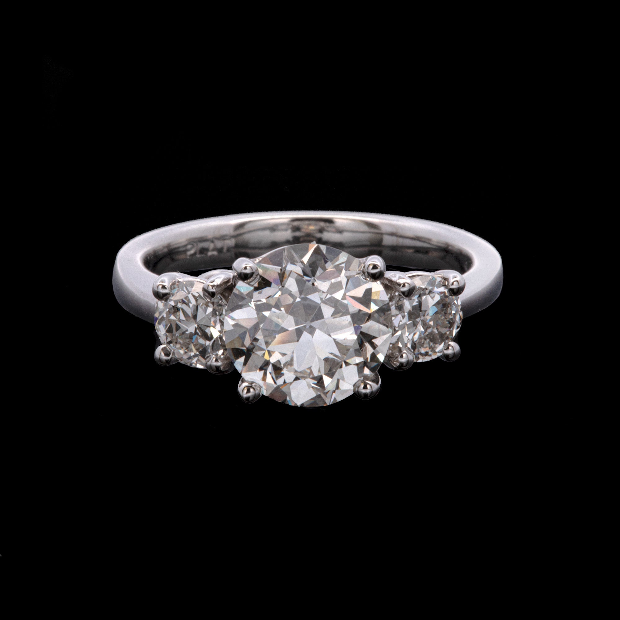 Platinum Old European Cut Diamond Three Stone Engagement Ring