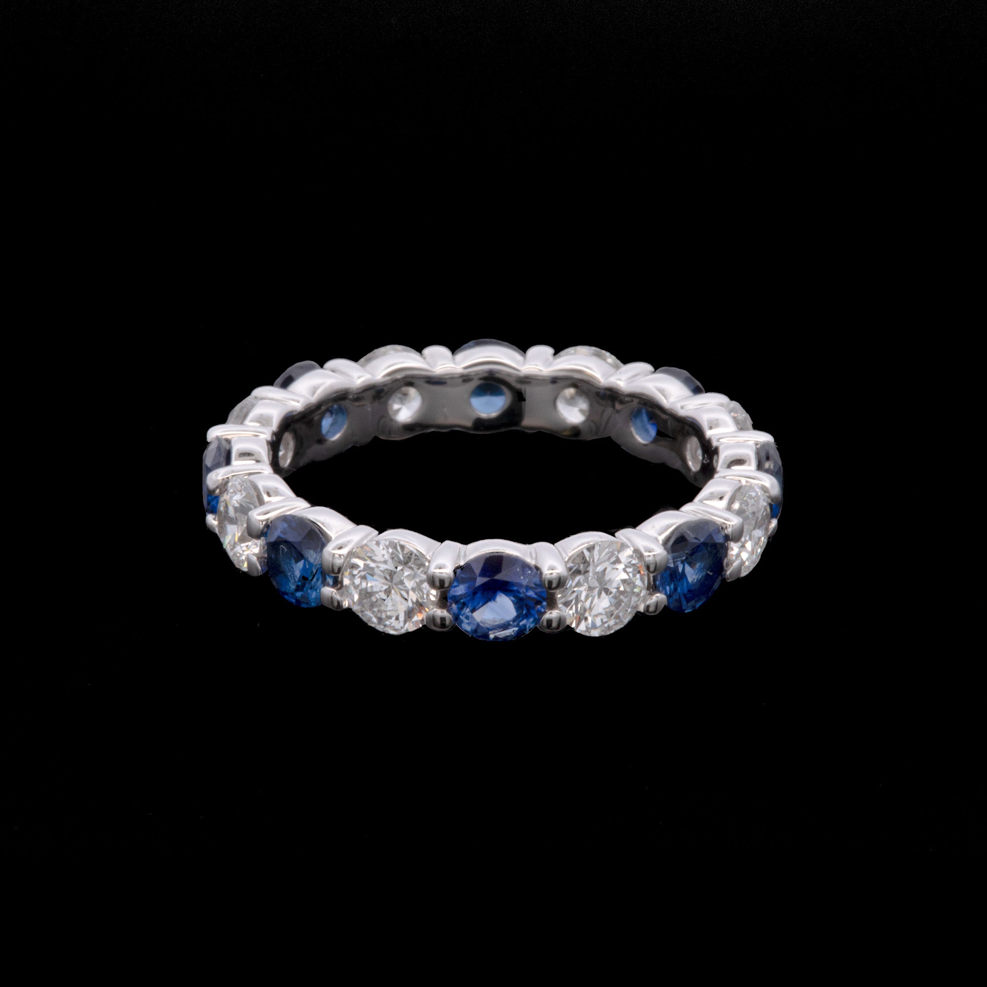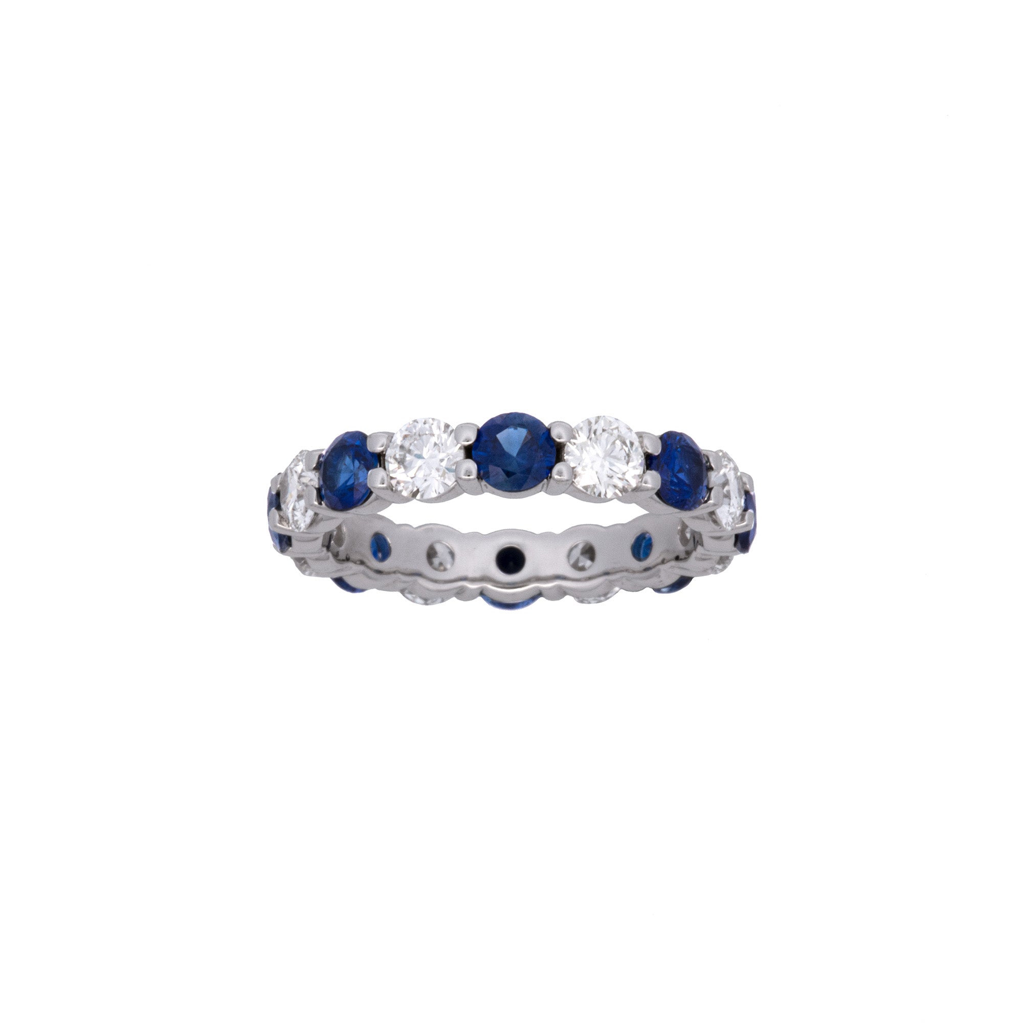 Platinum Sapphire And Diamond Band. Eight Sapphires Weigh A Total Of 1.55 Carats. Eight Diamonds Weigh A Total Of 1.35 Carats,