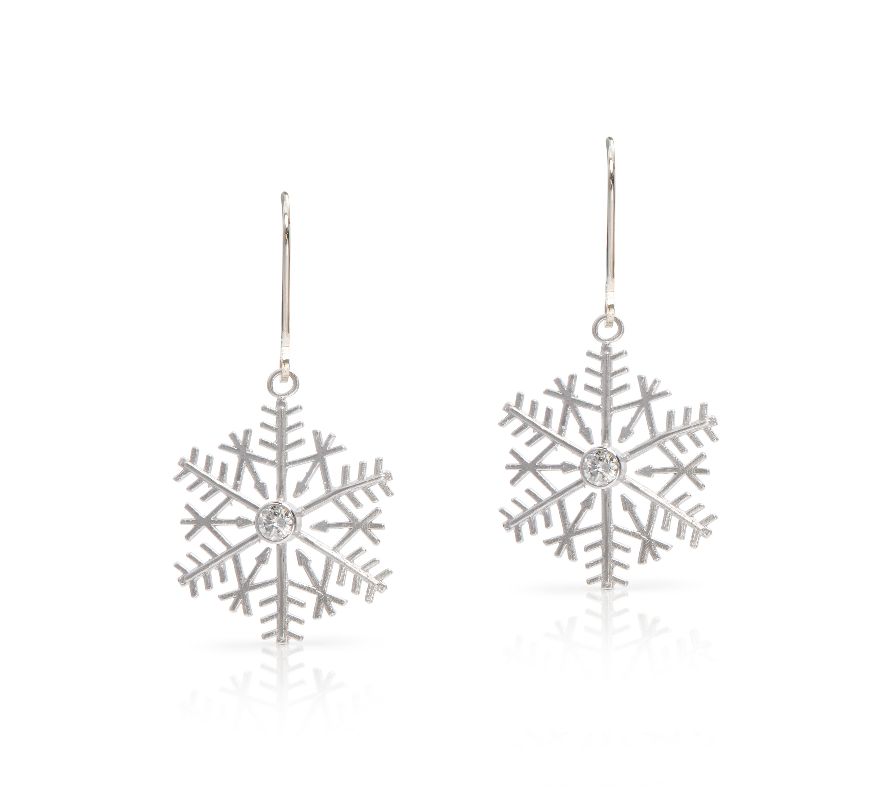 14K White Gold Bolton Diamond Snowflake Dangle Earring With Lever Backs. Diameter Measures 18mm.