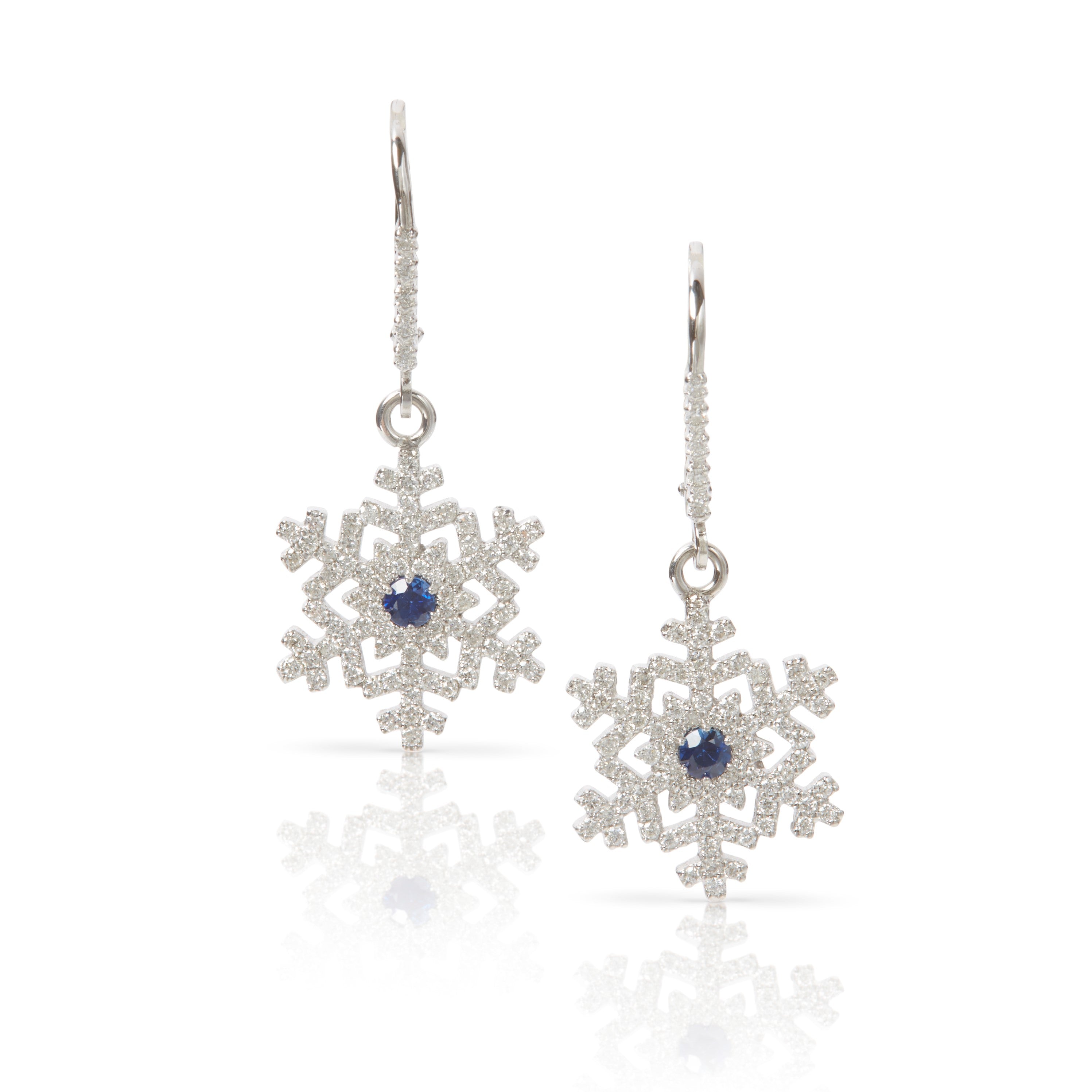 14K White Gold Waterbury Sapphire and Diamond Drop Earrings With Leverbacks The  Sapphires Weigh a total of 0.20 Carats. The Diamond Weigh a Total of 0.72 Carats. The Diamond Clarity is VS and The Color is G-H.