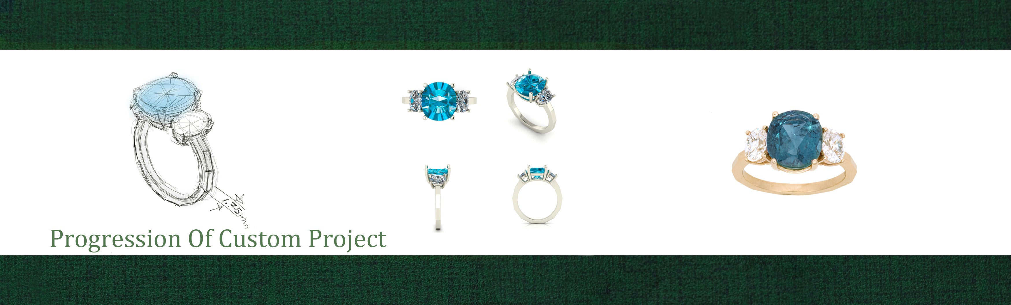 Bring us any pictures, drawings, or ideas as well as any stones or metal that you may want to re-use or trade in for credit. Depending on the project - hand sketches, computerized 3D modeling, or wax models may be needed. Once we finalize the design, production can begin.