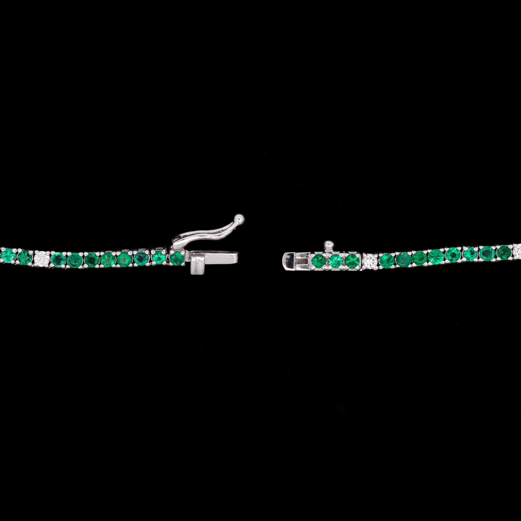 14K White Gold Emerald And Diamond Line Necklace, 18 Inches. One Hundred Seventy-Nine Emeralds Weigh A Total Of 5.52 Carats. Twenty-Two Diamonds Weigh A Total Of 0.80 Carats.