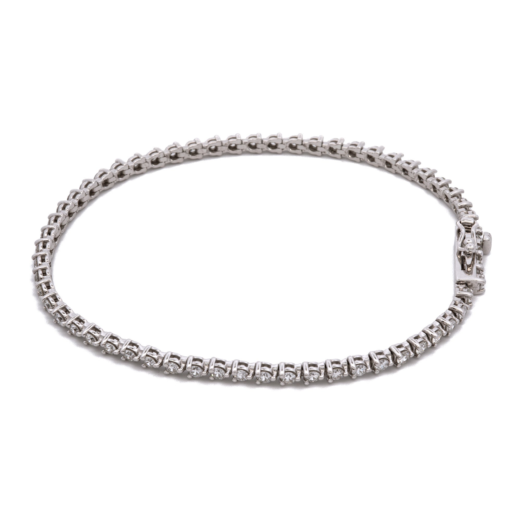 14K White Gold Three Prong 2.00ctw Diamond Line Bracelet, 7 Inches