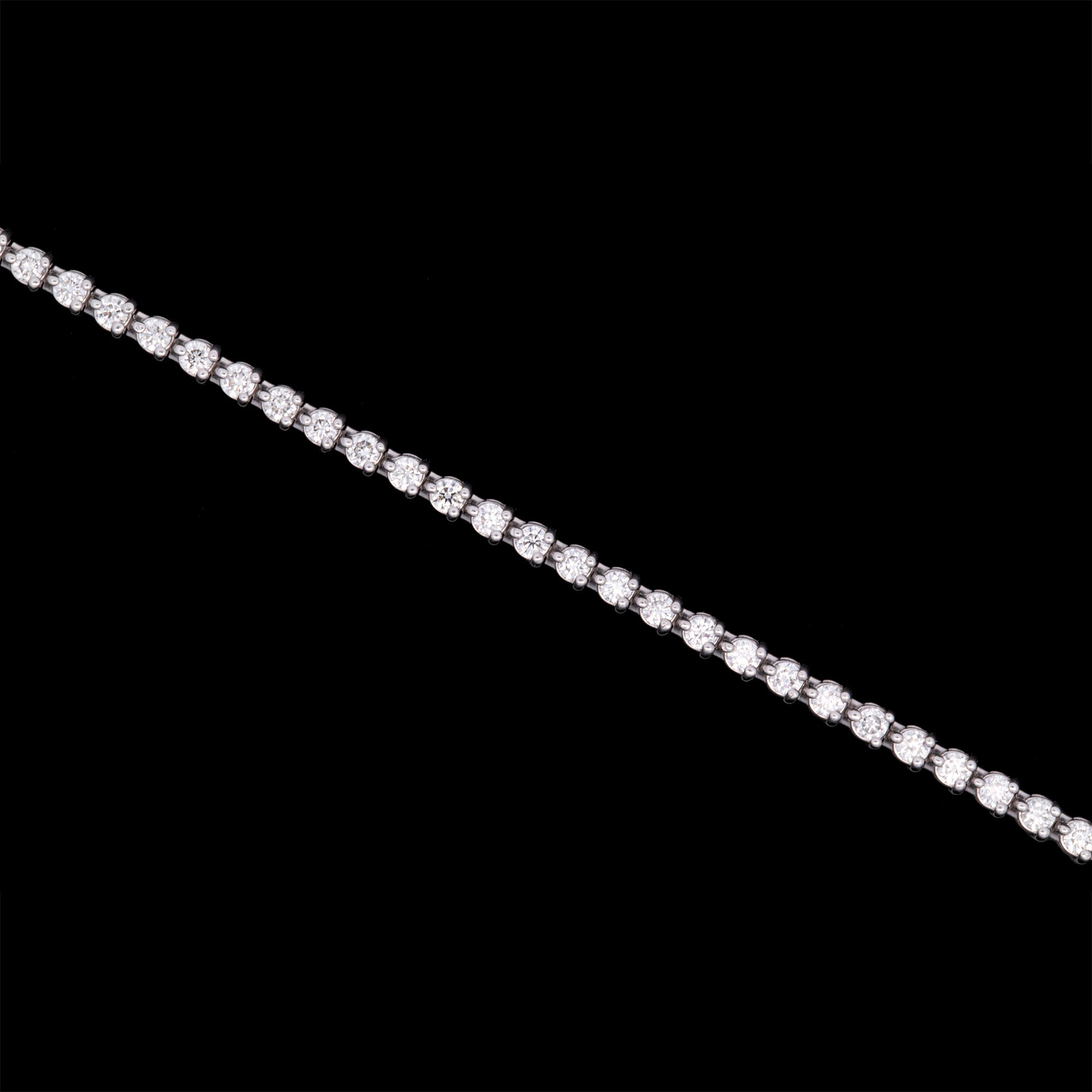 14K White Gold Three Prong 2.00ctw Diamond Line Bracelet, 7 Inches. Fifty Eight Diamonds Weigh a Total Of 2.00 Carats And Have G-H Color, VS1 Clarity.