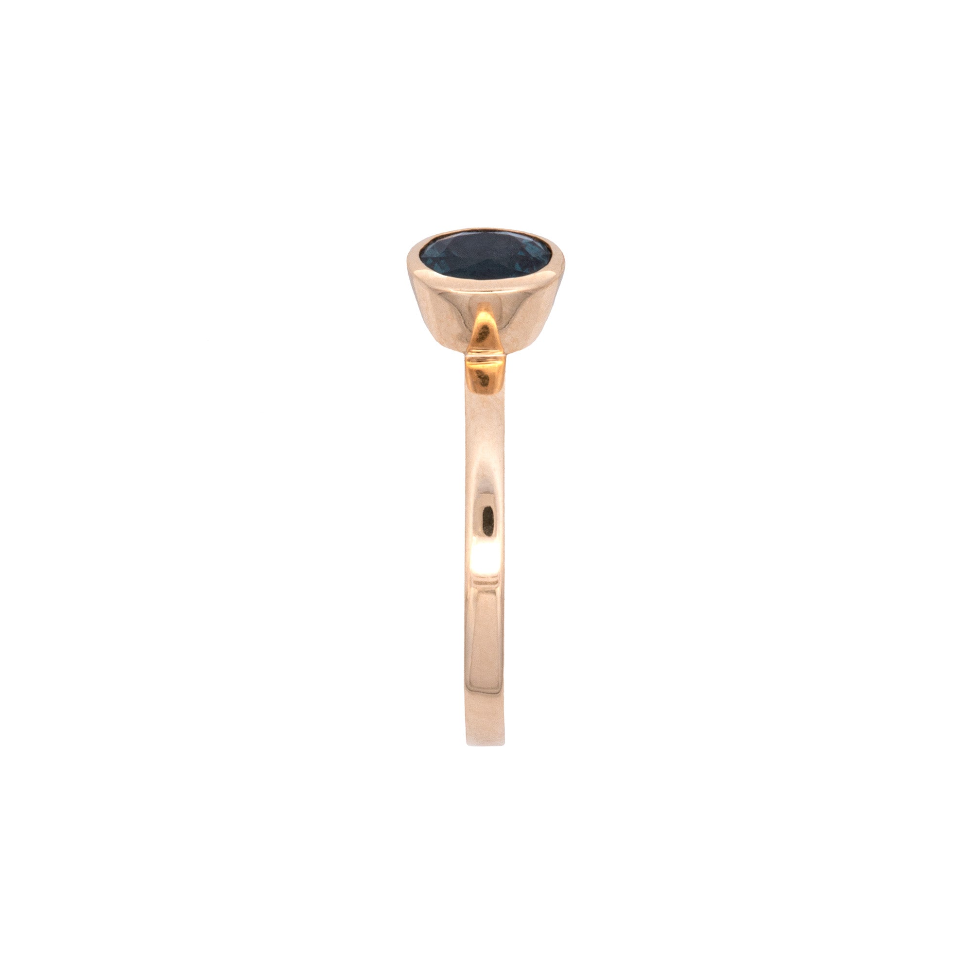 14K Yellow Gold Bezel Set Oval Blue Sapphire Ring