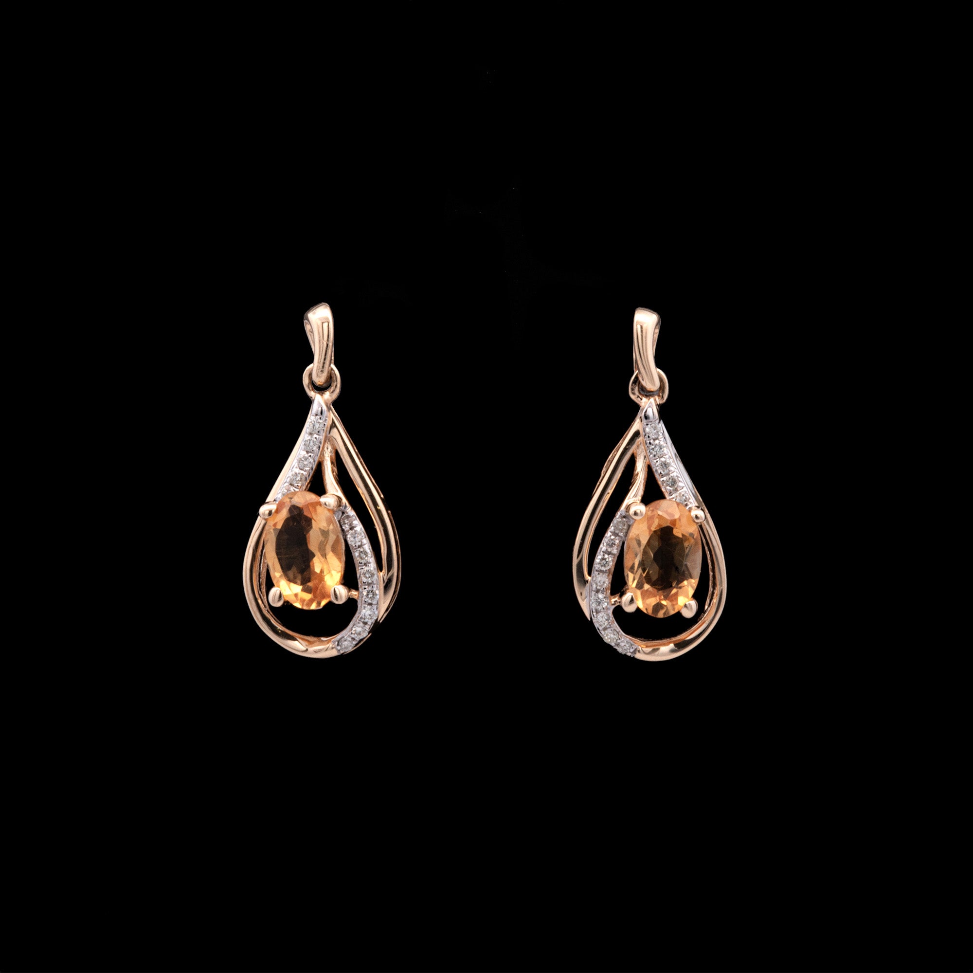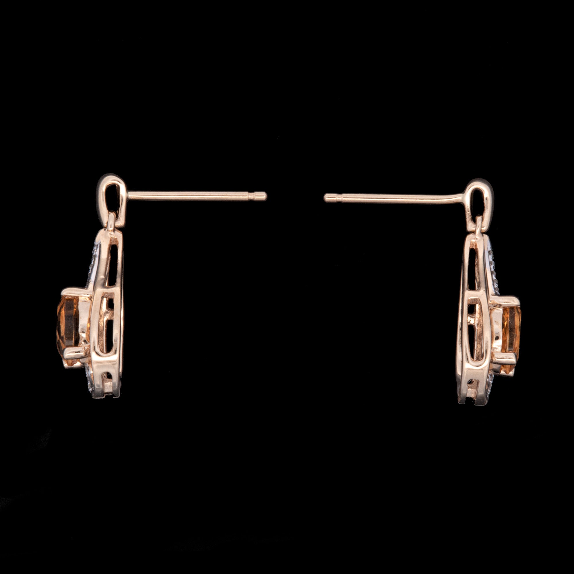 14K Yellow Gold Citrine And Diamond Drop Earrings. Citrine Weigh A Total Of 0.85 Carats. Diamonds Weigh A Total Of 0.10 Carats.