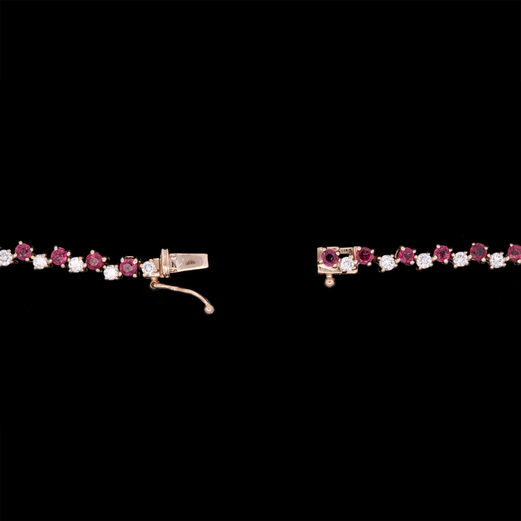 14K Yellow Gold Ruby And Diamond Bracelet, 7 Inches