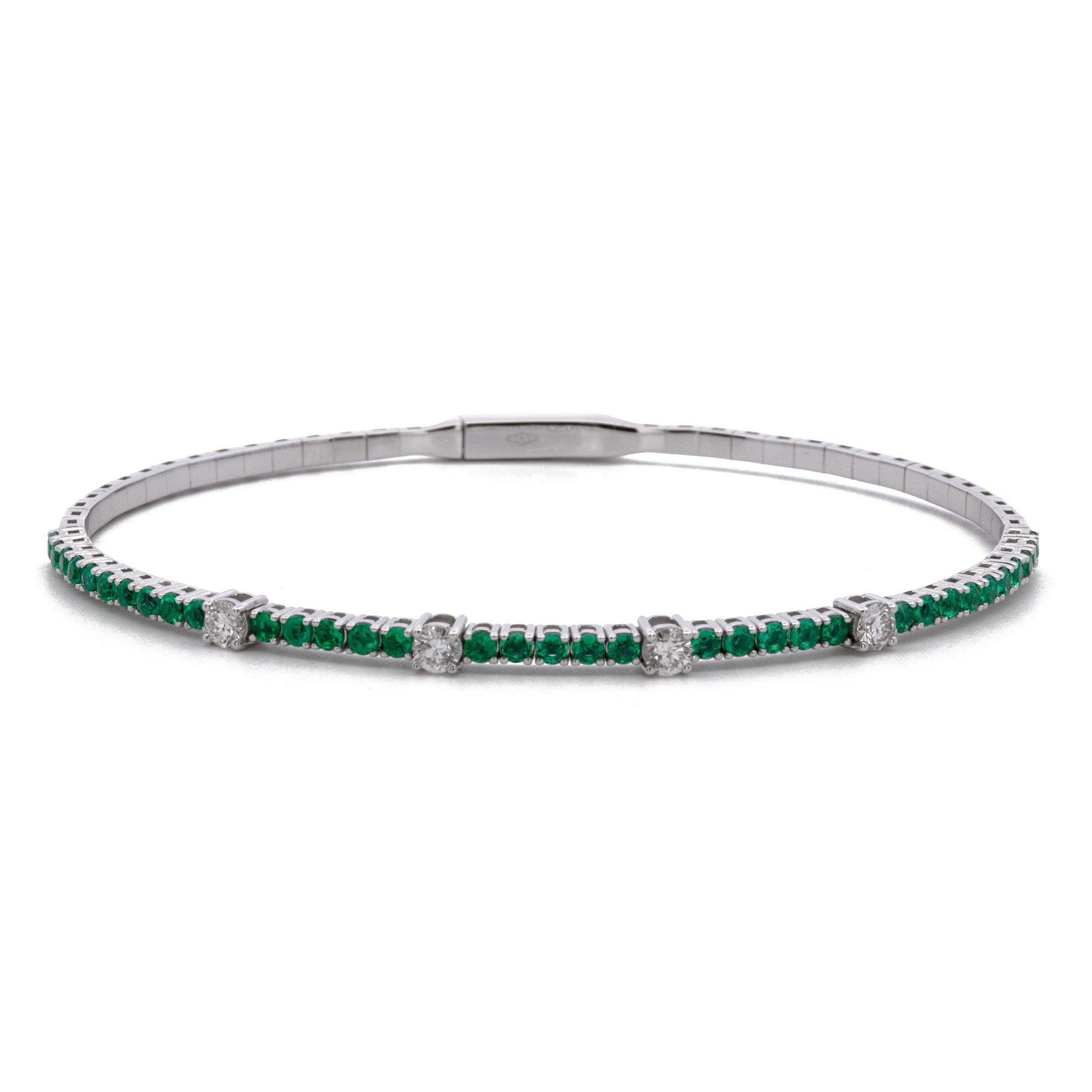 18K White Gold Emerald And Diamond Flexible Bracelet