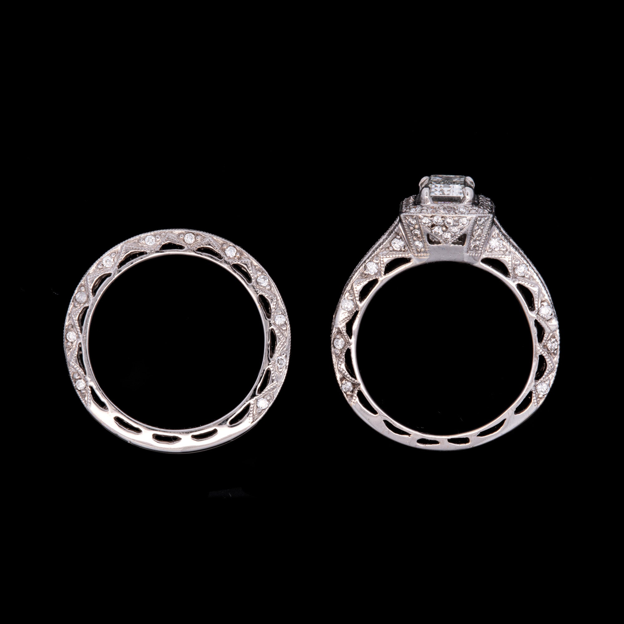 18K White Gold Emerald Cut Diamond Ring And Wedding Band Set