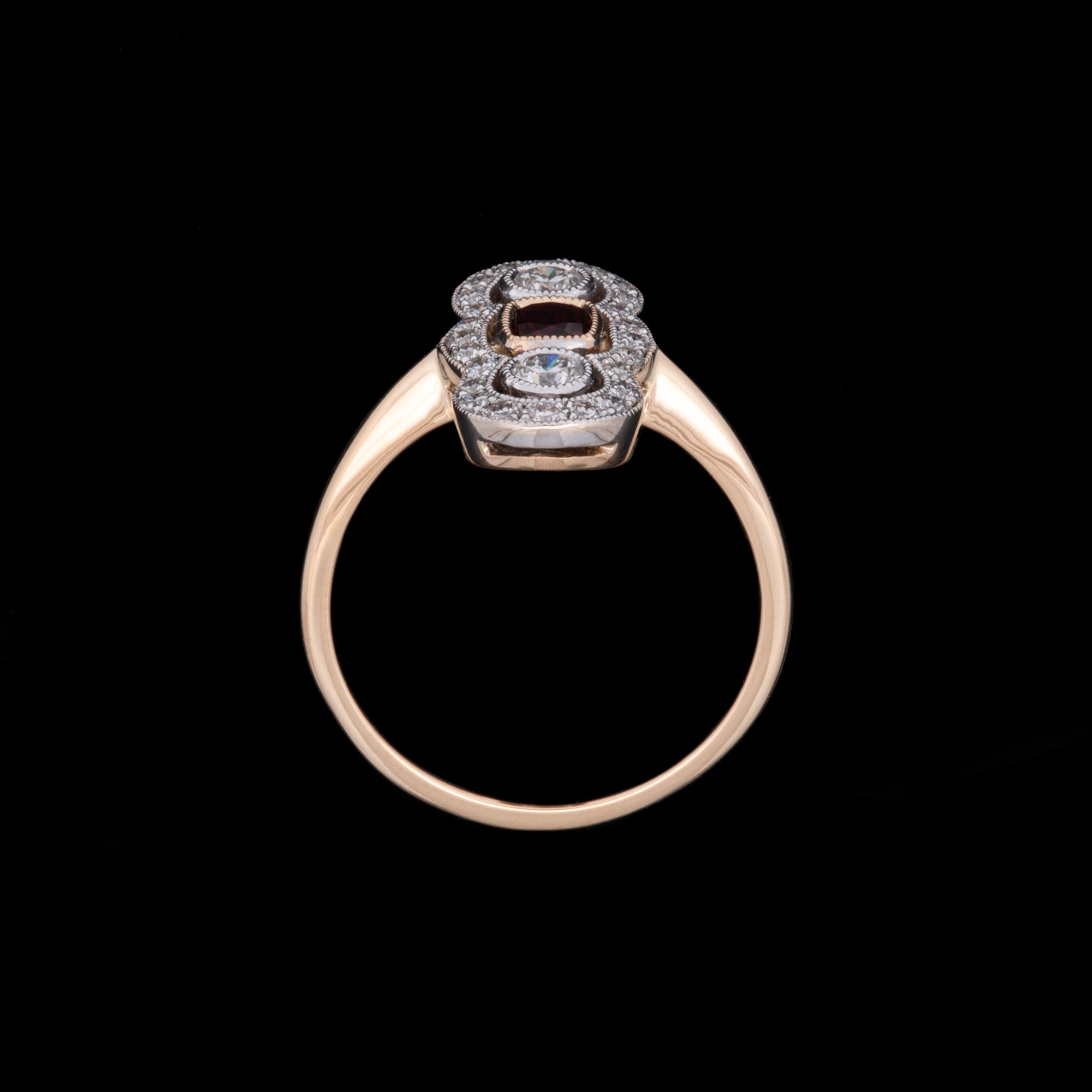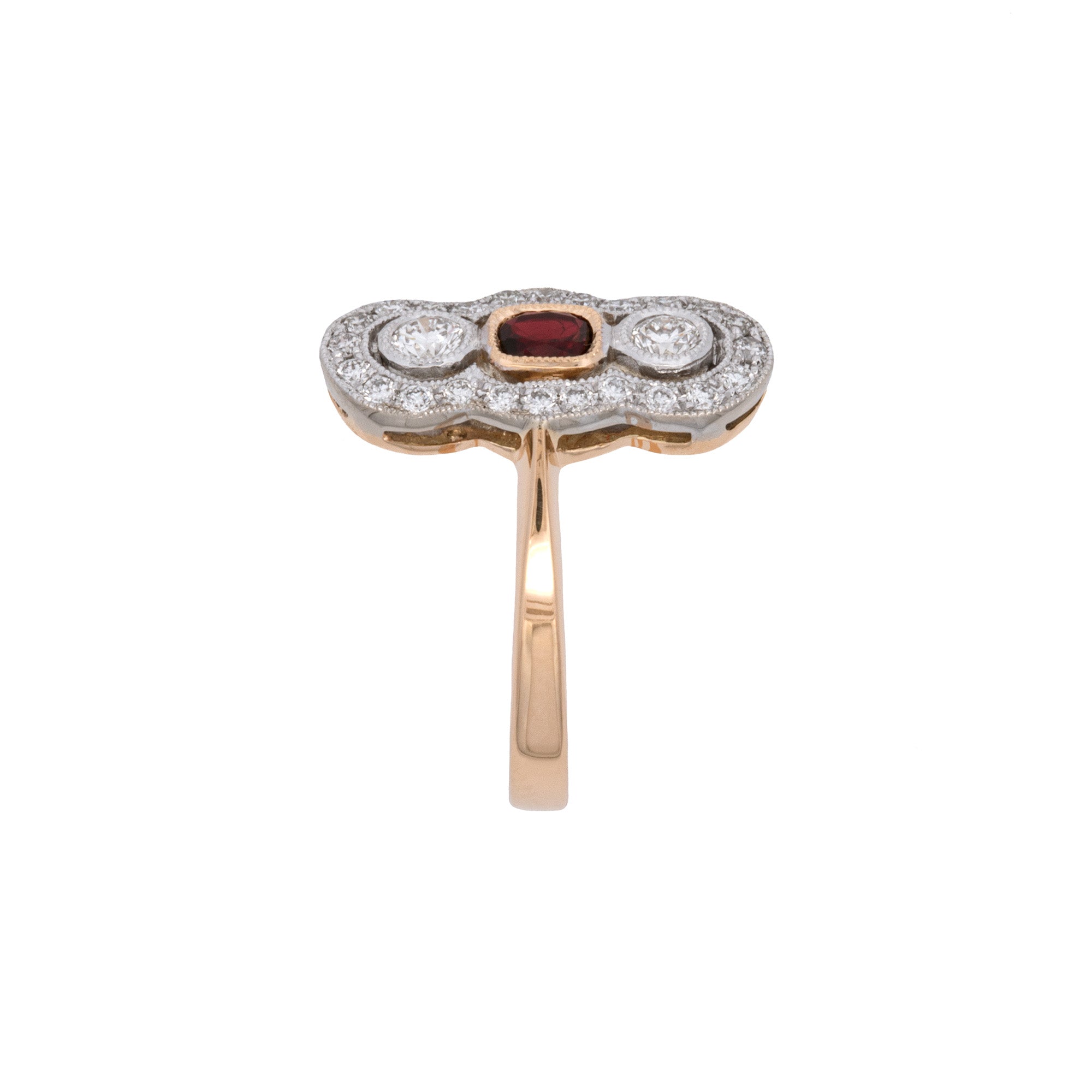 18K Yellow And White Gold Ruby And Diamond Shield Ring