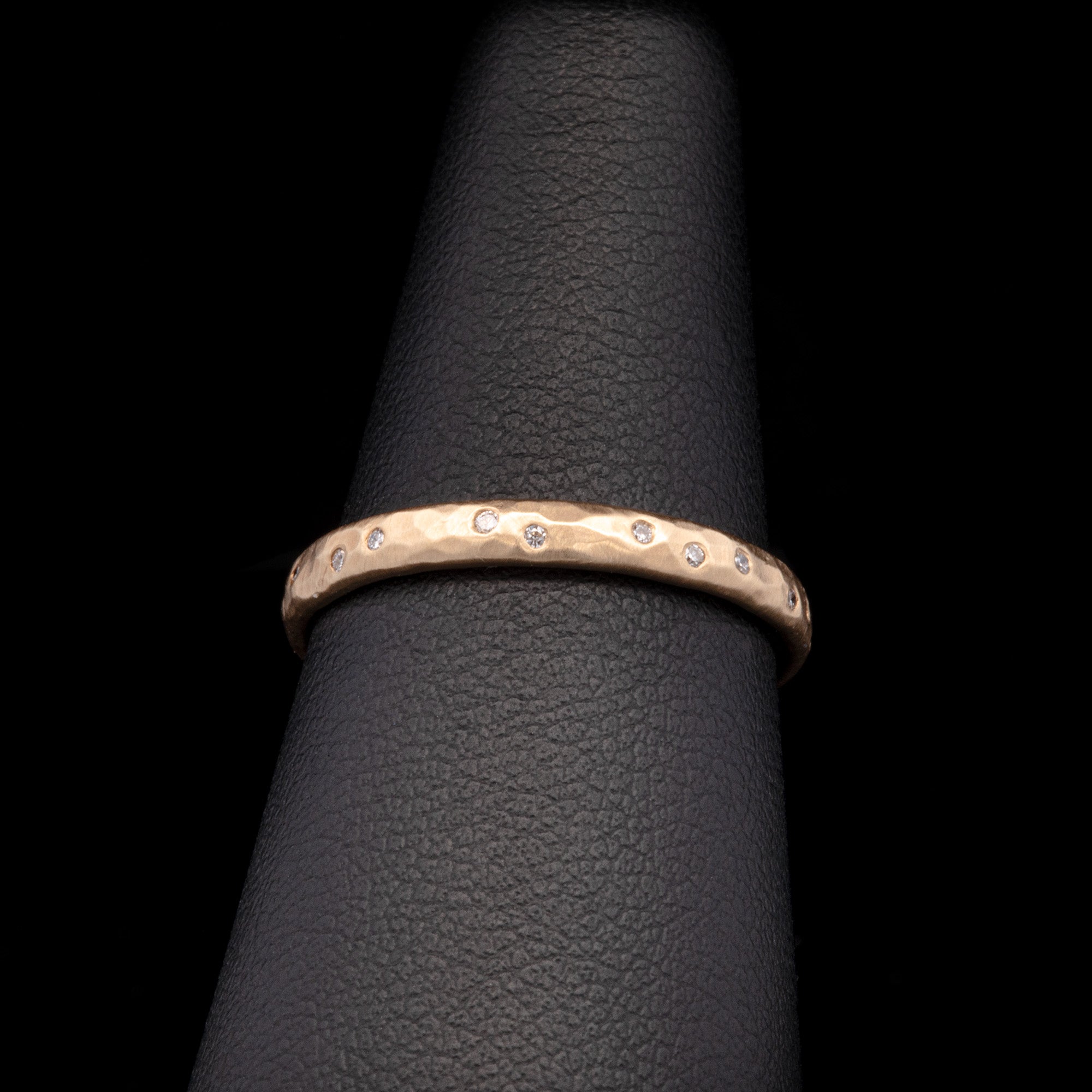 18K Yellow Gold Hammered Diamond Band. Diamonds Weigh A Total Of 0.05 Carats. Sizing Available.