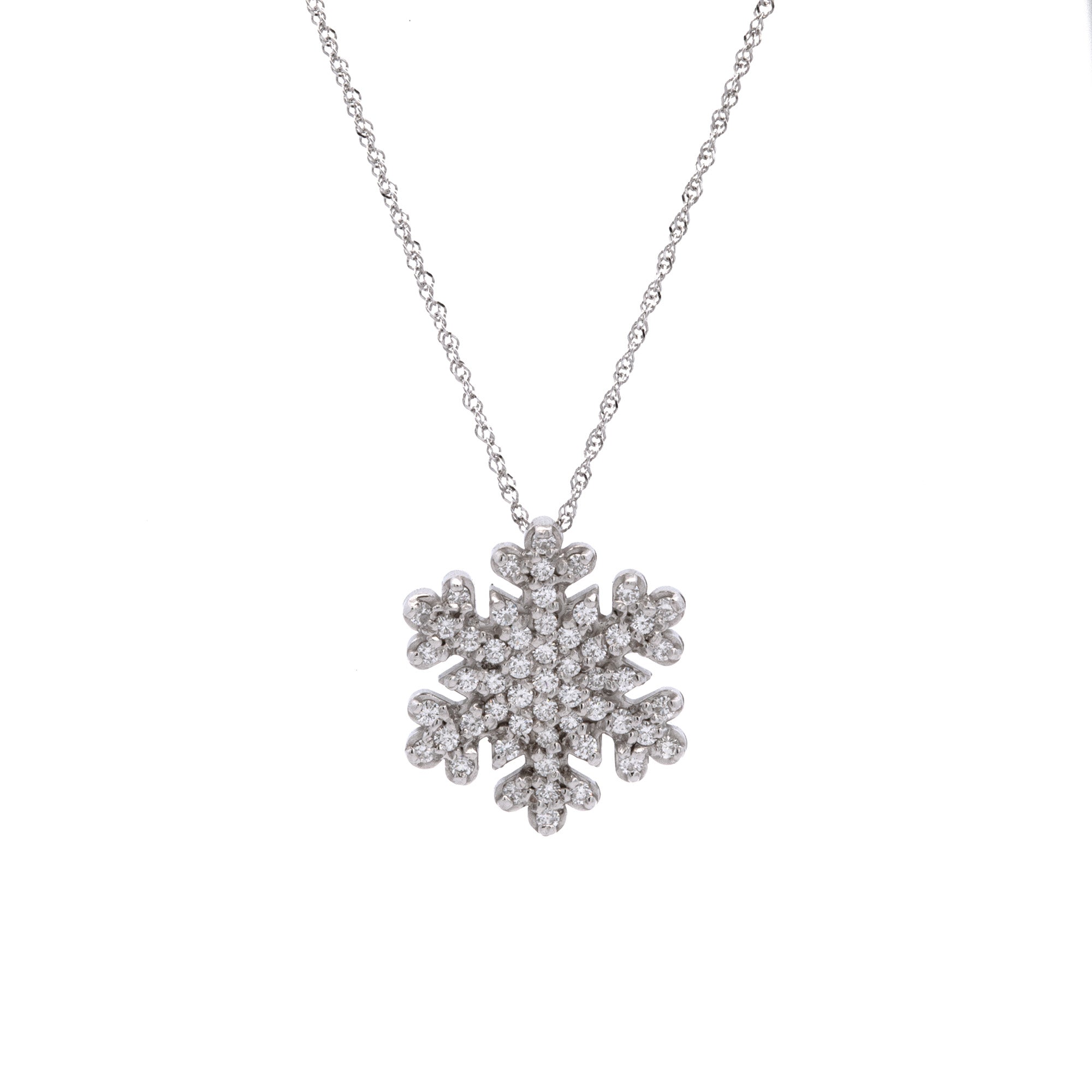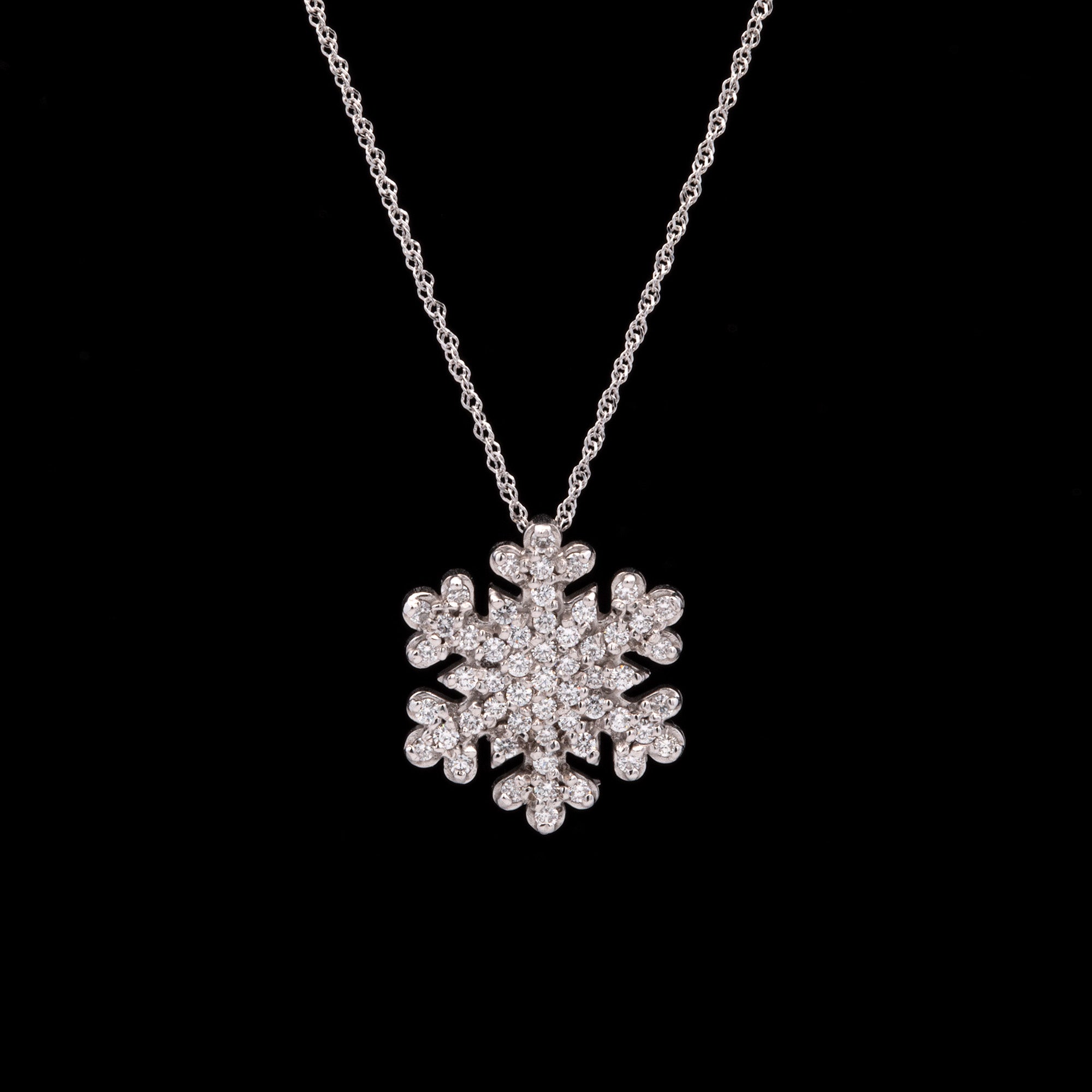 14K White Gold Charlotte Diamond Snowflake Pendant With 18" Chain. The Diamonds Weigh A Total Of 0.53 Carats And Have G-H Color And VS Clarity. Diameter Measures 15mm.