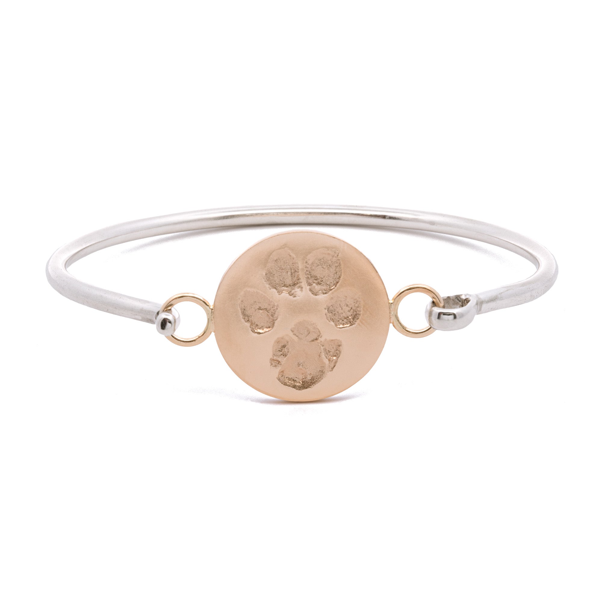 Custom Sterling Silver And 14K Yellow Gold Memorialized Dog Paw Print Hook Bracelet With Engraving