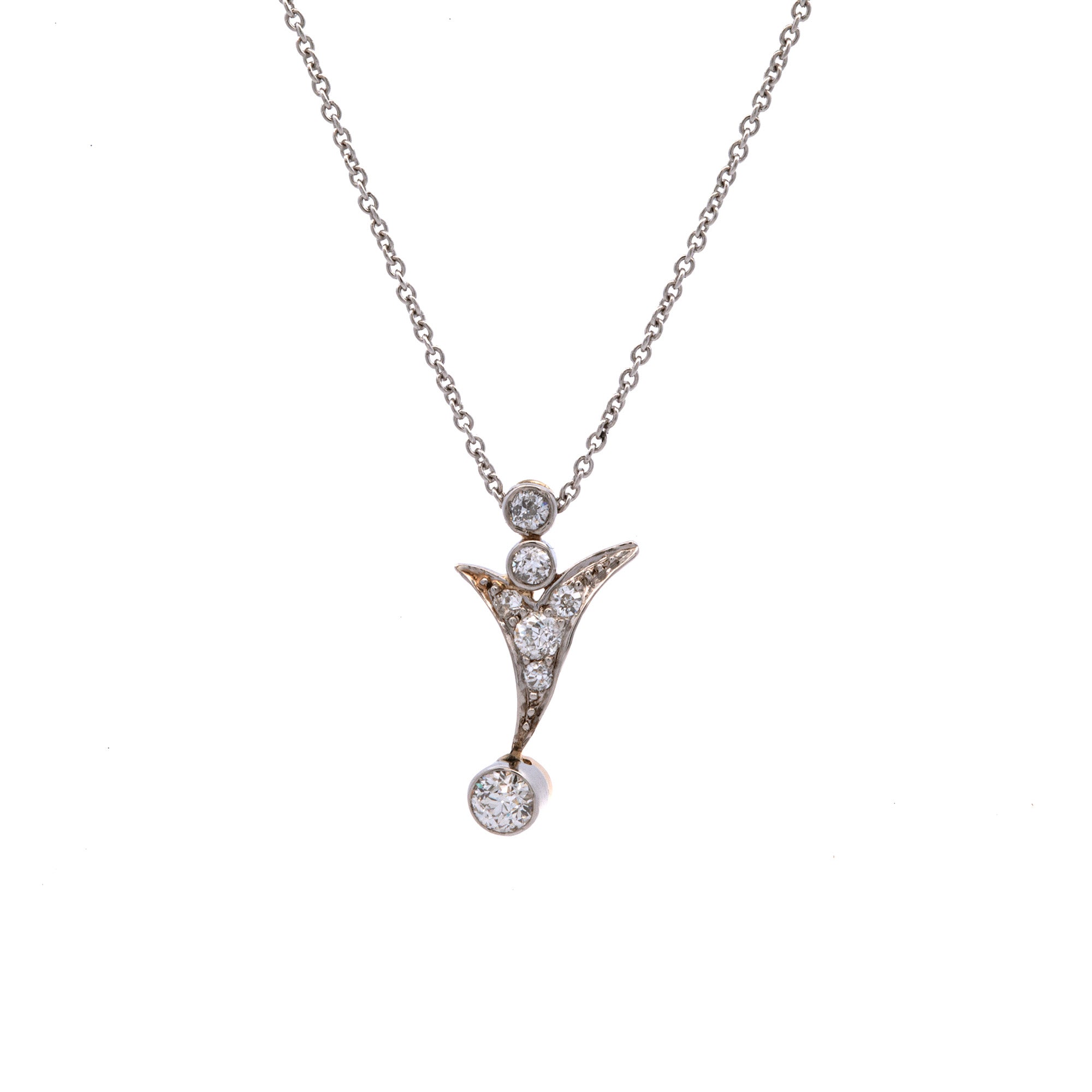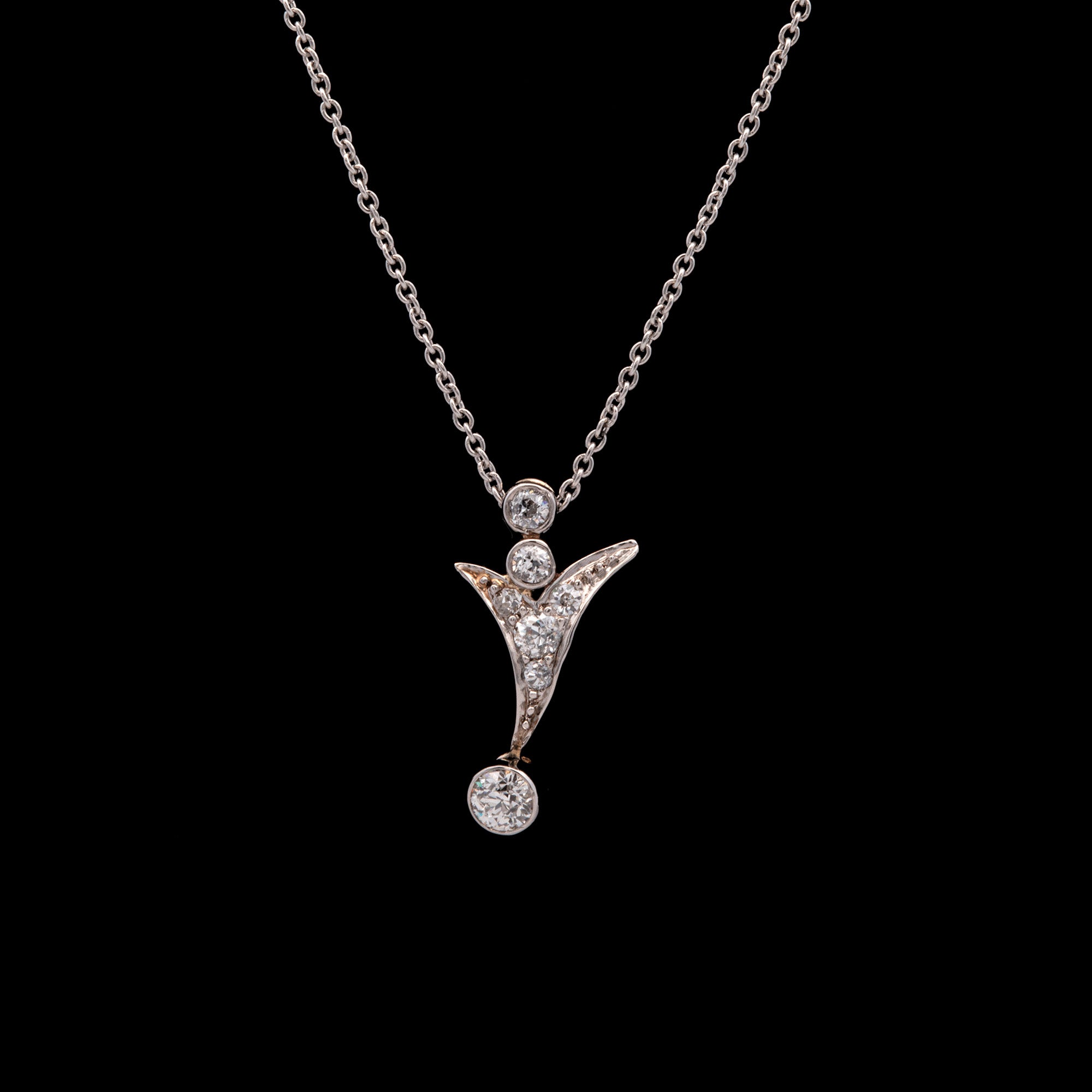 Platinum And 18K Yellow Gold Edwardian Diamond Drop Pendant With 18 Inch Chain