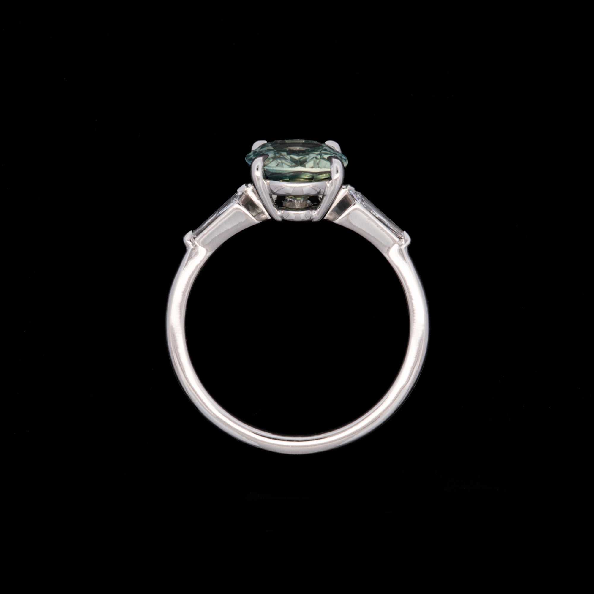 Platinum Oval Teal Sapphire And Kite Diamond Ring